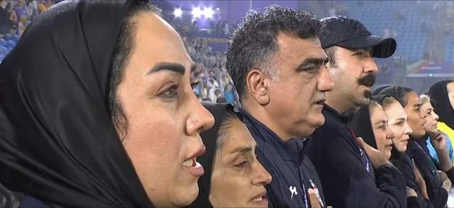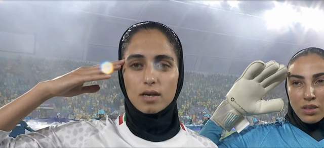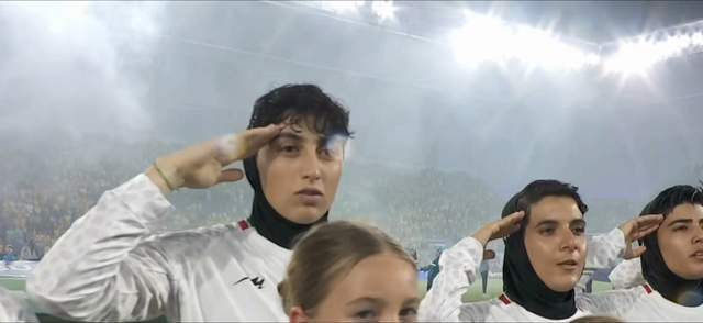 但是今天下午17点,伊朗女足迎战东道主澳大利亚,入场后,伊朗女足球员和替补席的教练、球员,均高唱国歌。并且,首发11人还集体敬礼!