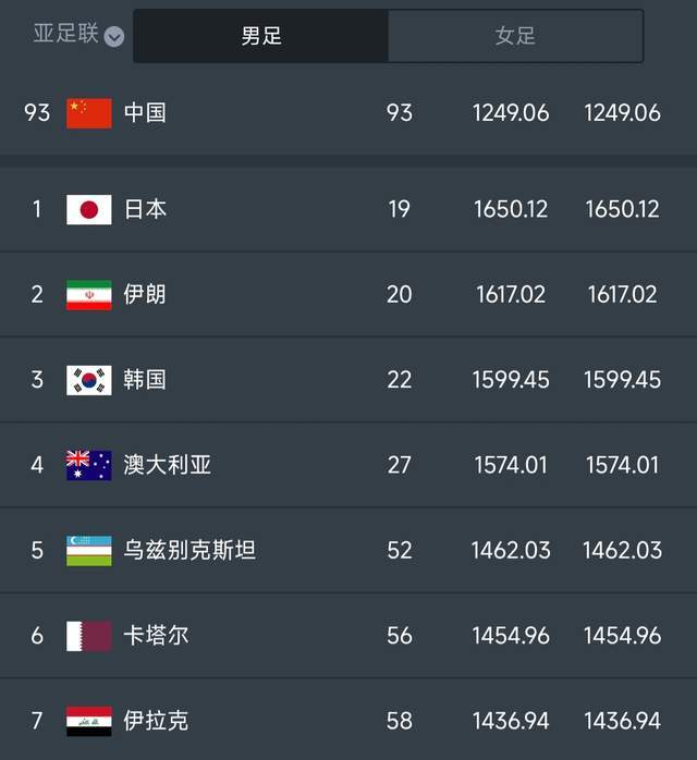亚洲男足排名